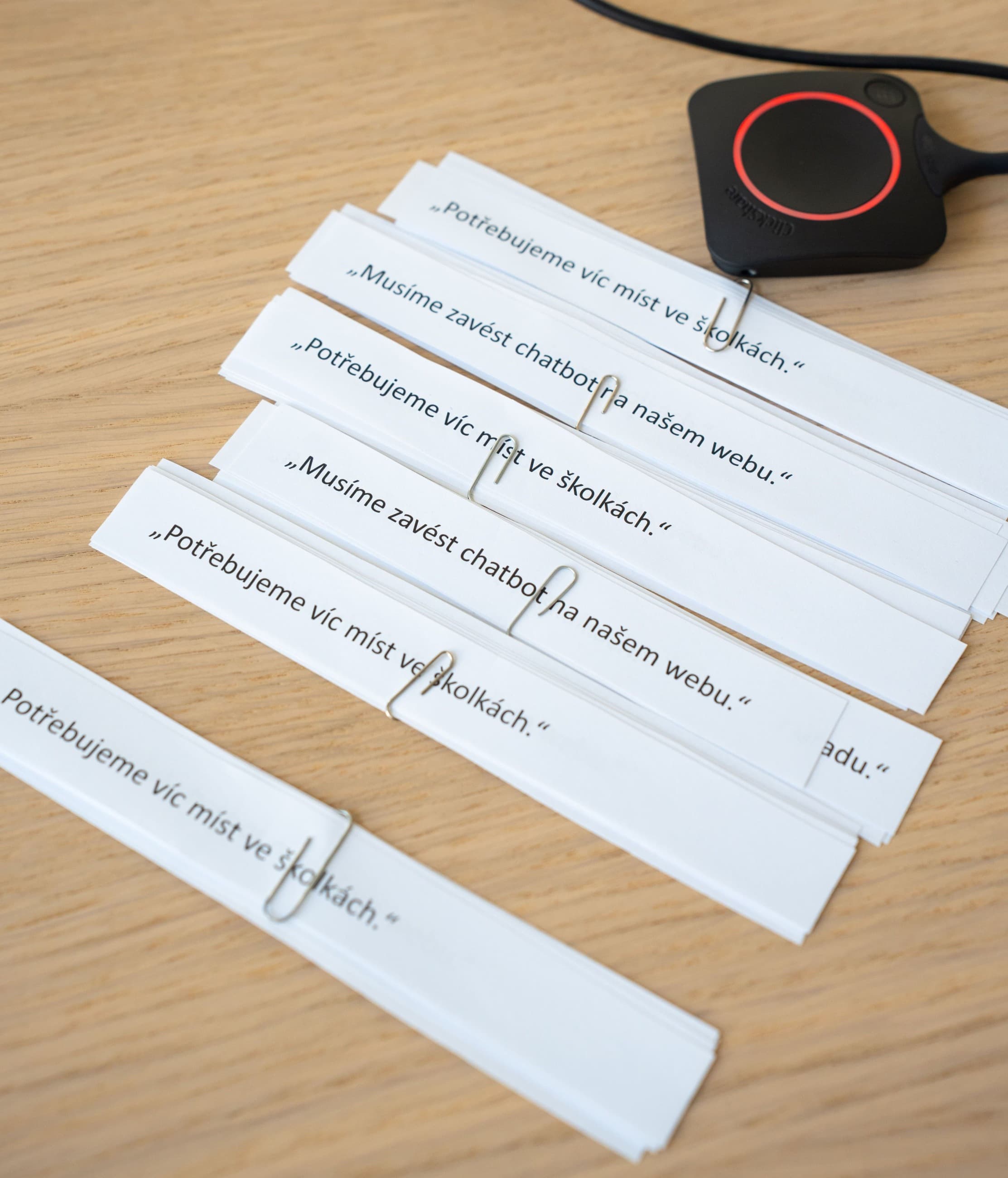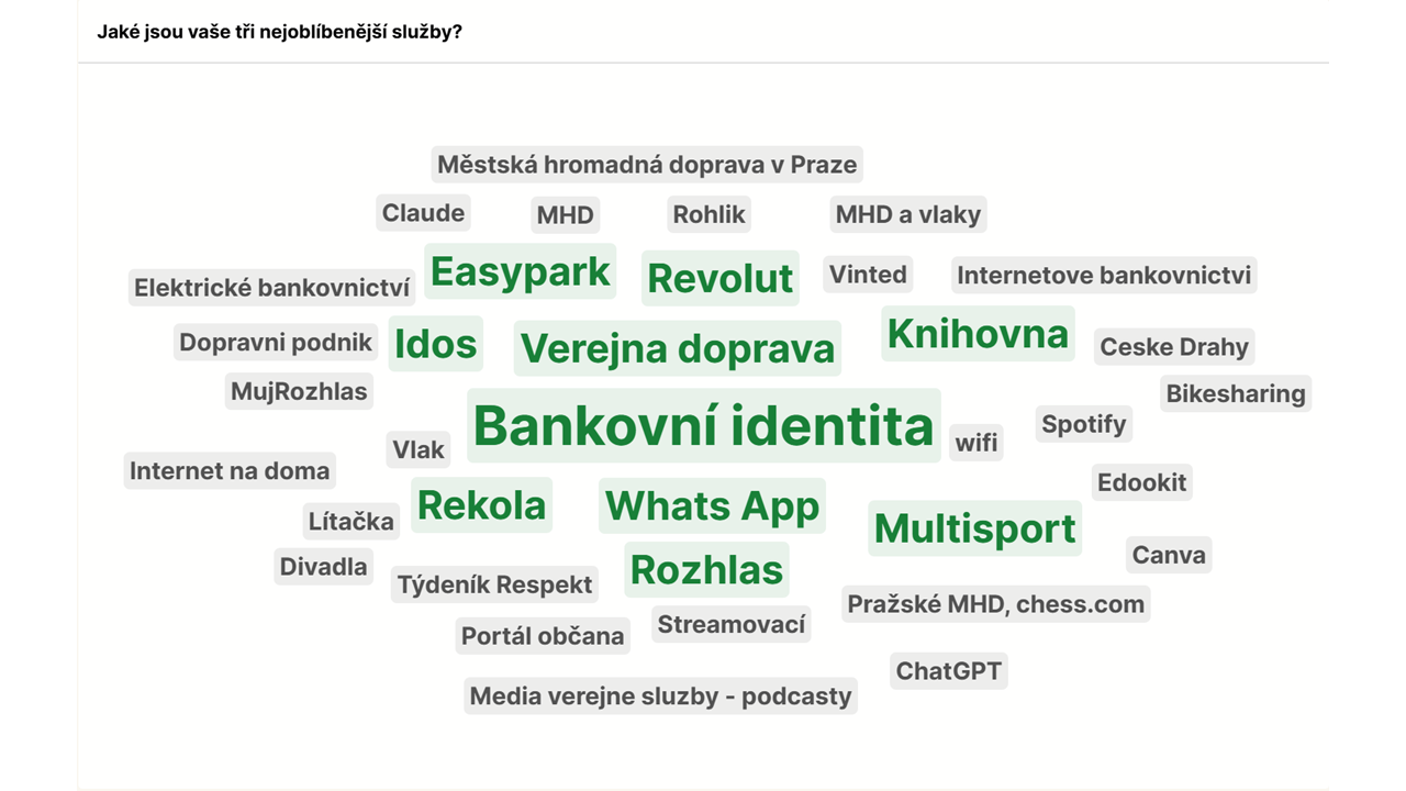 Účastníci se doptávali, co si mají představit pod službou. Odpověděl jsem jim, že může jít o digitální služby, ale i služby v offline světě, které používají denodenně, stejně jako služby soukromé nebo veřejné. Nechtěl jsem dávat žádné konkrétní příklady, abych je neovlivnil.